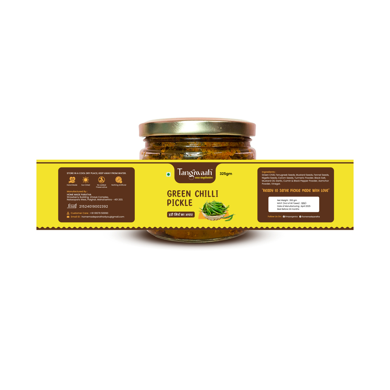 For those who love the thrill of heat in every bite, Tangiwaah Green Chilli Pickle delivers pure, authentic spice. Made using fresh, tender green chillies sourced from local farms, this achar is prepared with a blend of hand-roasted traditional spices and cold-pressed mustard oil.